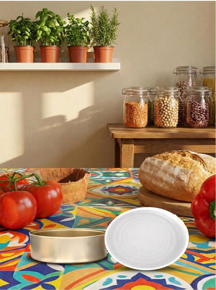 Konzervový obal s rozmerom Ø99x33, s objemom 200 ml